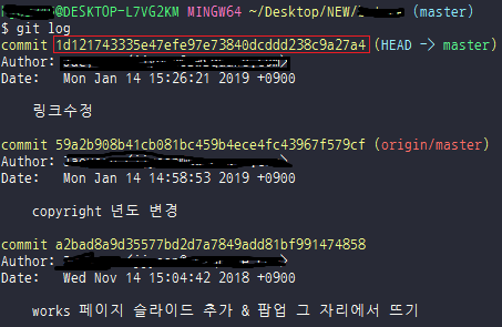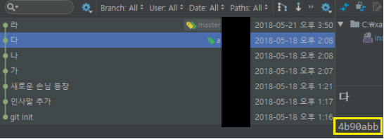 ->git bash에서 git log 명령어를 치시면 저 빨간네모박스 처럼 commit 해쉬값이 나옵니다. 다 입력 할 필요 없이 앞에서 일곱자리까지만 입력하셔도 됩니다.