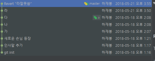 -revert는 내가 commit한 내용은 남아있지만 소스상태는 되돌리는 것을 말합니다. 말로는 설명이 좀 이해하기 어려우니 직접 보시죠