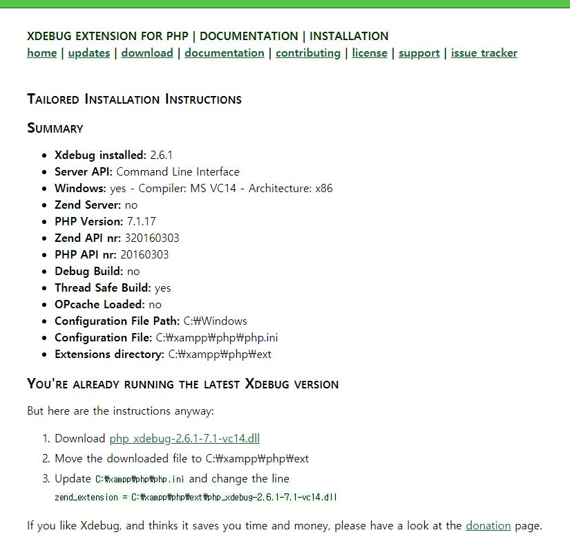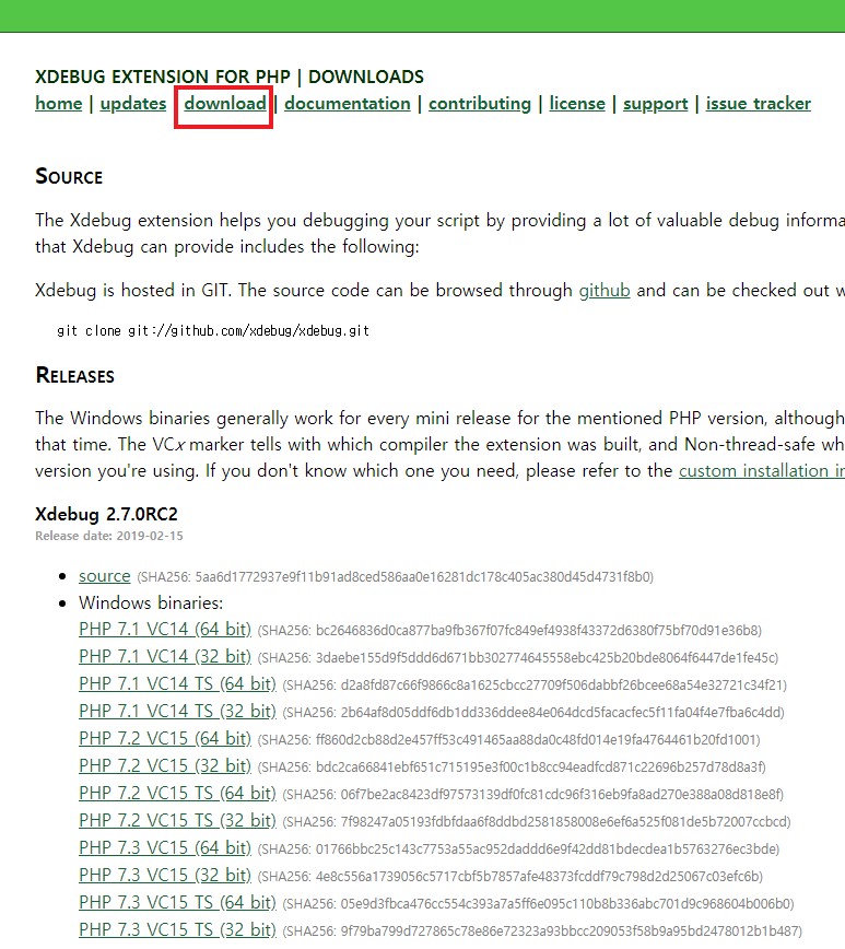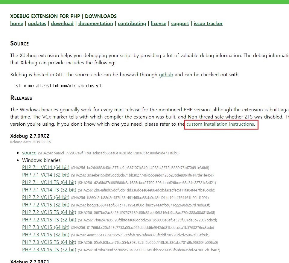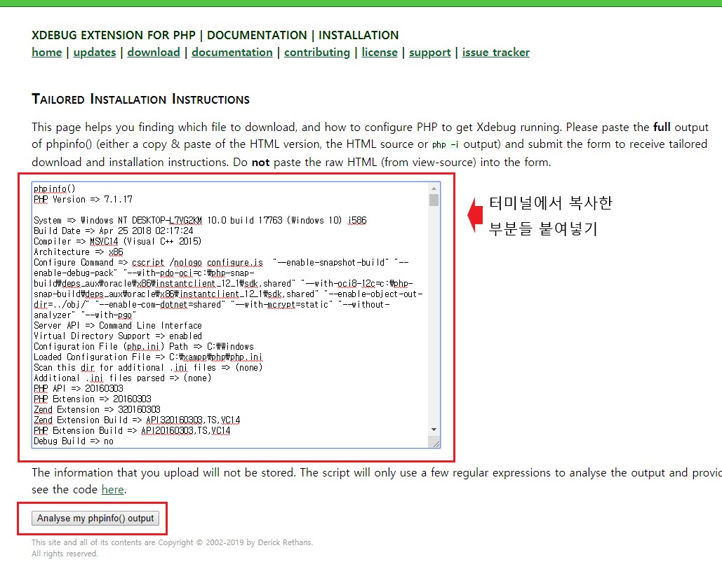 - 다시 xdebug 사이트로 돌아와서 아래의 사진에 네모표시부분을 눌러주세요.