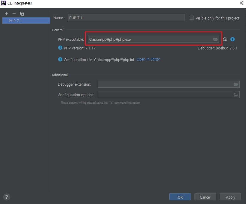 - 아래의 그림처럼 php.exe 찾아주시고요. Debugger에 화면처럼 xdebug가 안뜨면 설정이 먼가 잘못된겁니다.