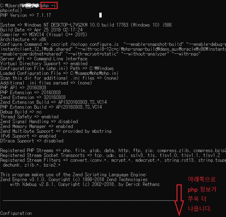 - 터미널을 열어 주세요. 아래의 그림처럼 php -i 를 쳐주세요.