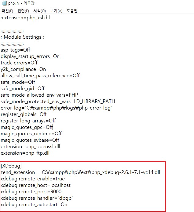 ->보통 ext 폴더아래에 php 모듈파일들이 위치합니다. - php.ini 파일을 엽니다.